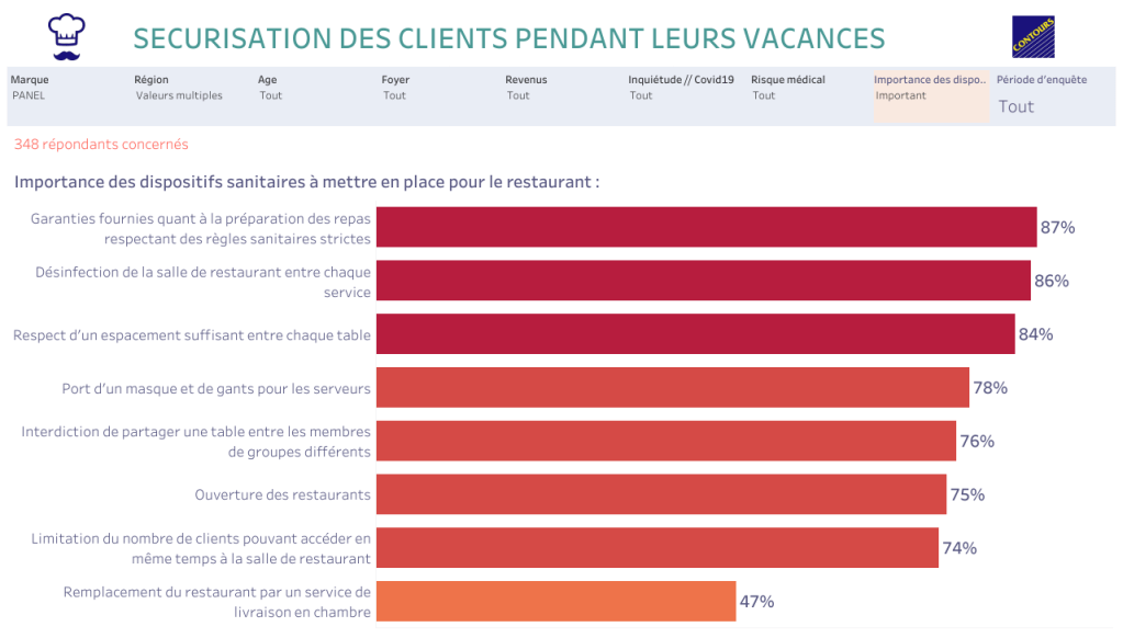 Au-delà de l’équipement sanitaire de leur lieu de séjour, les consommateurs sont évidemment sensibles aux mesures sanitaires envisagées pour les différentes composantes ou services de leur séjour.